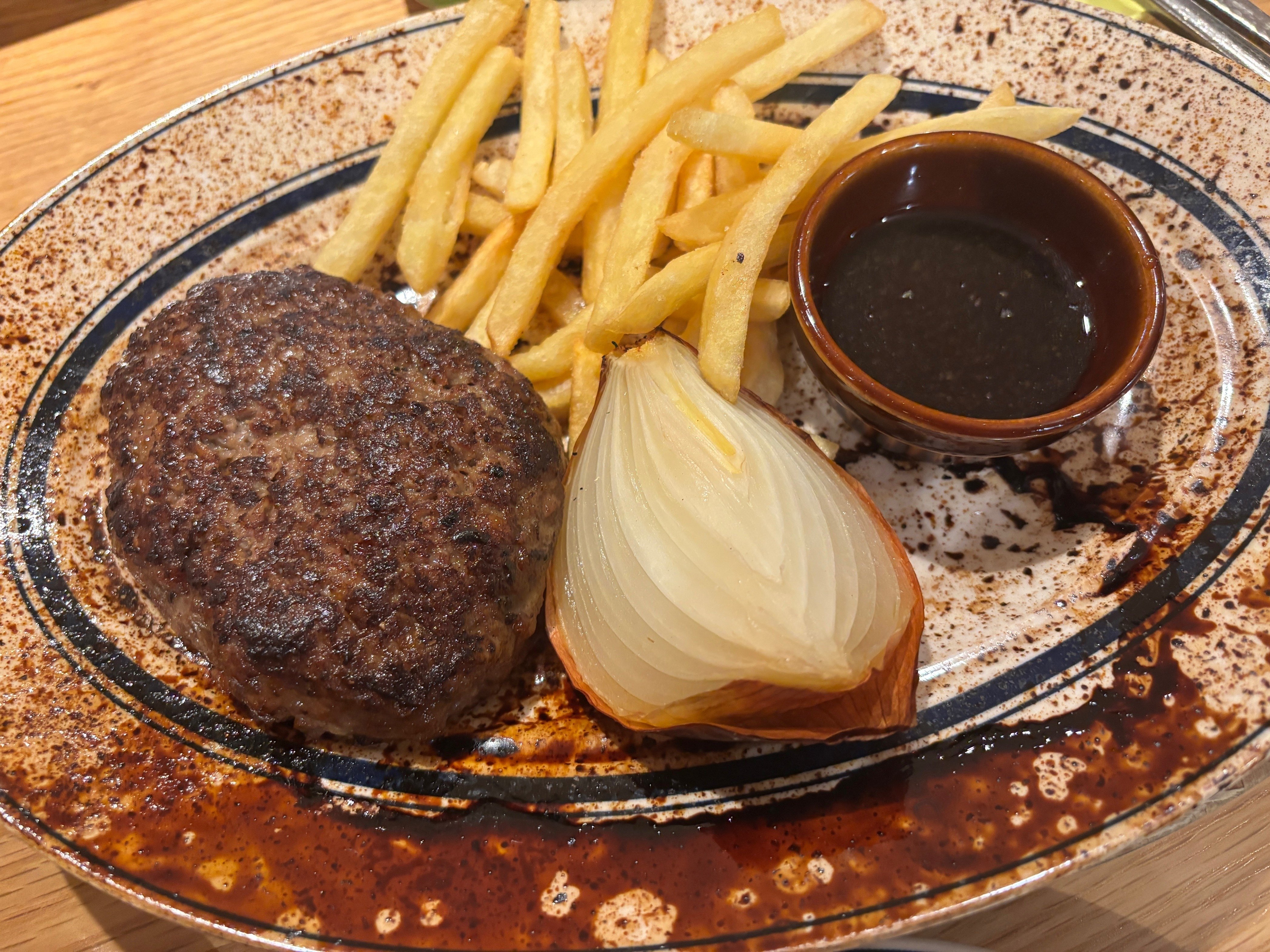 • 【写真付き】肉汁溢れるWHAT’Sの炭火焼きハンバーグ